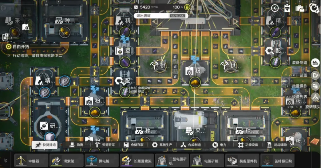 基建是特色玩法,玩家需规划电网、铺设传送带,搭建从采集到制造的全自动生产线。产出资源可制作装备和消耗品,蓝图系统降低入门难度,地区贸易体系让基建与角色成长、剧情推进深度绑定,形成资源循环。