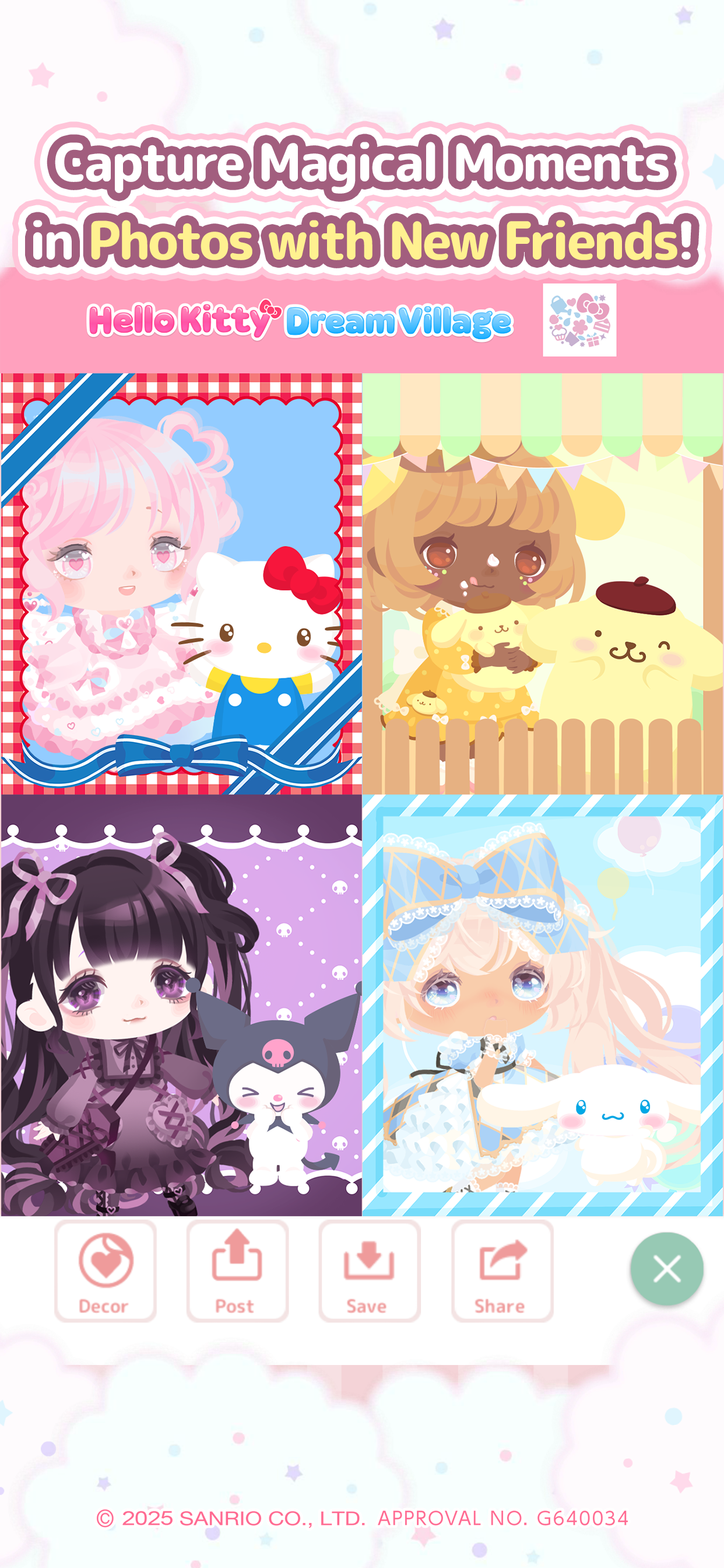 - 三丽鸥角色可能会向你寻求帮助!通过与您最喜欢的角色聊天来拉近与他们的距离!