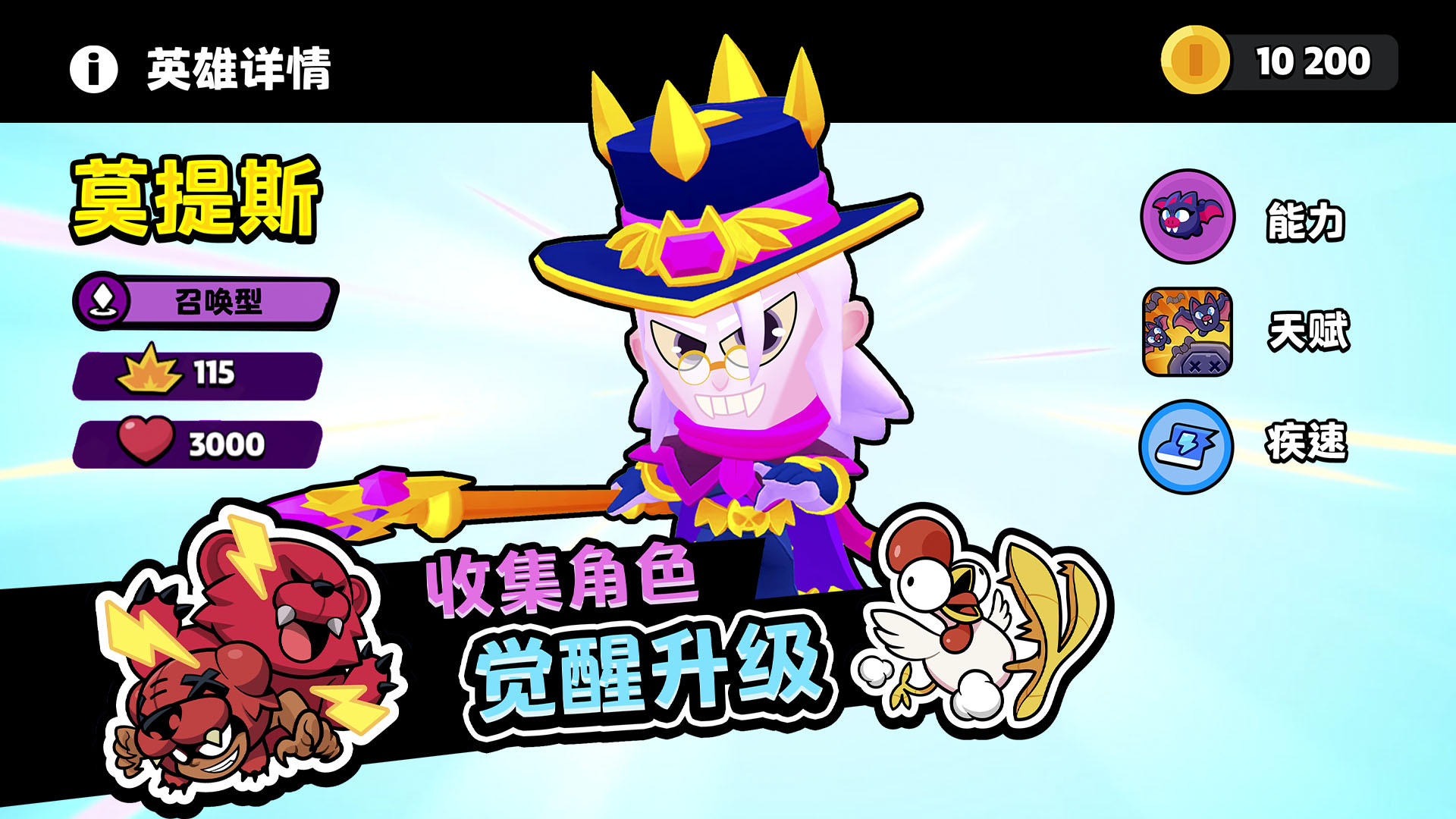 为每场战斗设计专属连招,收集进化来自《部落冲突》、《荒野乱斗》、《卡通农场》、《皇室战争》和《海岛奇兵》等 Supercell 游戏的全明星角色,每个角色均拥有原作经典技能。