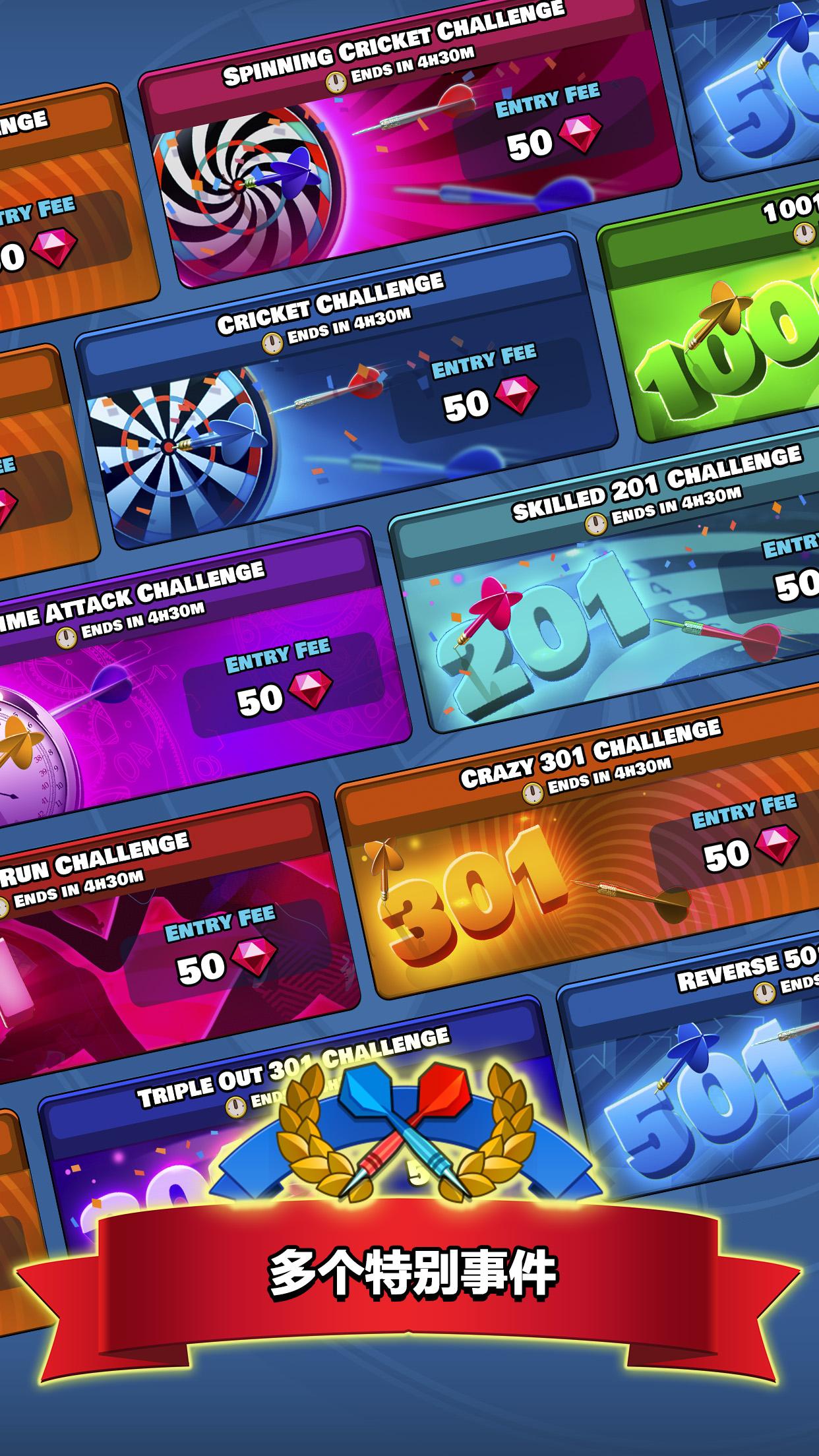 - 复杂的升级系统:找到各种新道具以加强您的飞镖!