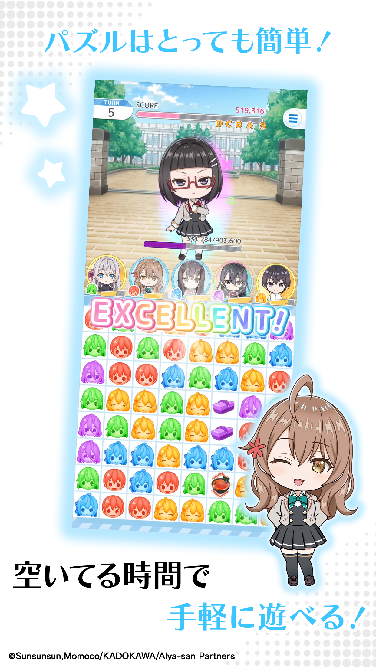 这是一款简单的三消益智游戏,充满了阿莉亚和她的朋友们的可爱。